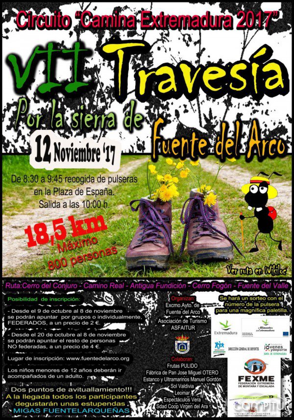 El próximo domingo 12 de noviembre se celebrará la VII Travesía por la Sierra de Fuente del Arco, Circuito “Camina Extremadura 2017”.
