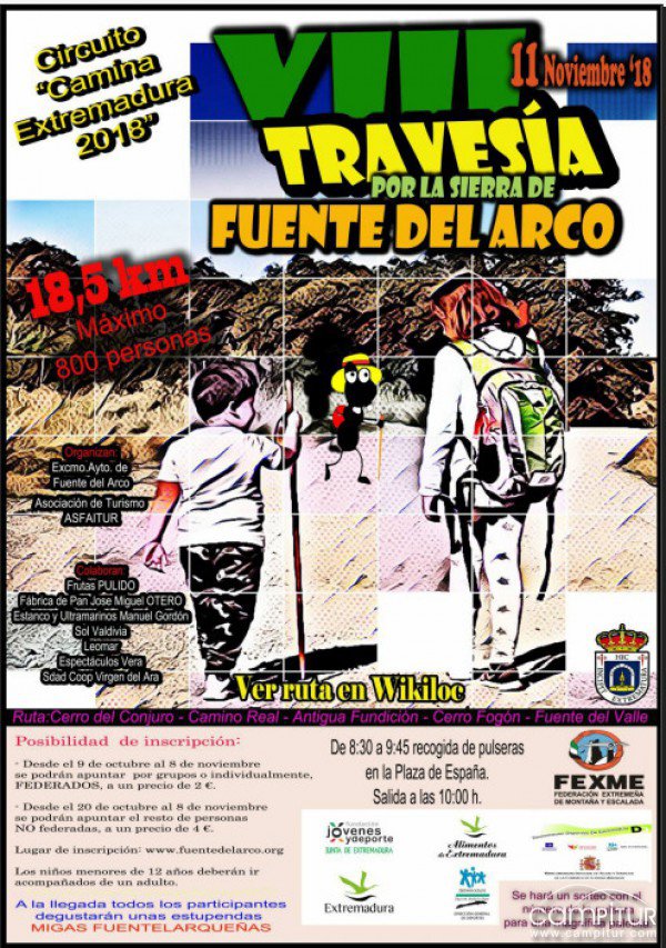 El Ayuntamiento de Fuente del Arco y la Asociación de Turismo ASFAITUR, organizan la puesta en marcha de la VIII Travesía por la Sierra de Fuente del Arco, que se llevará a cabo el próximo domingo 11 de noviembre