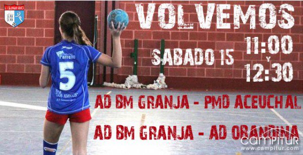 Desde las 11:00 de este sábado, mañana de balonmano en Granja de Torrehermosa, AD Bm Granja – PMD Aceuchal, en categoría cadete y AD Bm Granja – AD Obandina, desde las 12:30, en categoría juvenil.