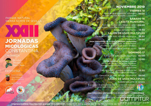 Durante el tercer fin de semana de noviembre, concretamente durante los días 15, 16 y 17 de dicho mes, Constantina acoge la celebración de las XXIII Jornadas Micológicas Parque Natural Sierra Norte de Sevilla, organizadas un año más, por la Sociedad Micológica Sierra Norte.